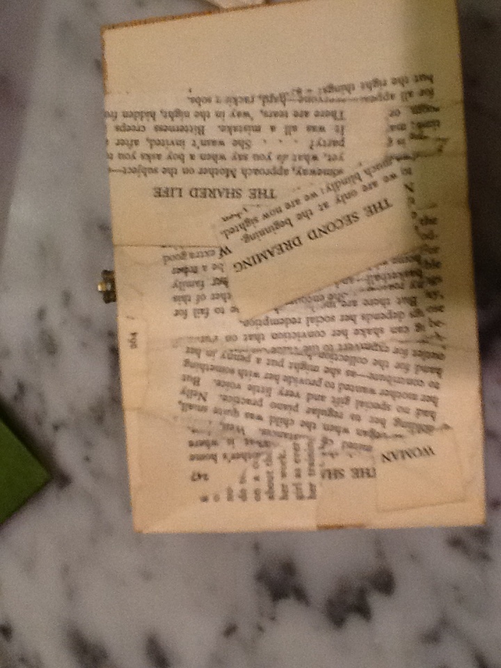 What? It’s the middle of the day, well not quite, but the sun is still out for some time to come and I am finished with a project. Yes, it is the one I started yesterday, and yes, it is completely different from what it started out to be. Last night I gave up. I posted that photo and went to bed. I really had no idea what I was going to do next. I had some idea about my mother (which I think I mentioned), but I felt overwhelmed and lost. I really wanted to do something different. I had a discussion with Dan about it this afternoon and had an epiphany. Altered art is difficult for me because there really are no rules, there are no “supposed to be”, or “supposed to look like” guidelines. There isn’t going to be anyone telling me that I’m doing it wrong, or something to compare it to. It is what it is, and you either like it or don’t. That’s hard for me. The whole thing is hard for me, courtesy of …myself! I’m beginning to think I need to recite a mantra while I work, repeating over and over, “Relax, relax…”. I’m a great cook, really great, like you would like to come to my house every night for dinner great, and I like to bake, and I’m good at it. I never, ever question myself when I am cooking or baking, I just do it. Most of the time I don’t even measure or follow recipes, and when I do I change them, I’m that confident. Why can’t I find that confidence in my art? When I told friends and family about this project many were happy for me and so supportive, some quite honestly seem to give a crap, but one in particular said something that really bothered me. (I won’t say who (or is it whom?) it is, let’s just say she may have given birth to my husband.) I said I was a little A.D.D. when it comes to art, there are way too many things I like to do, and that I find it difficult to stick to one thing. The response? A reference to “Jack of all trades, master of none”. Here’s the thing, I am good at everything I do. Am I the best? No, but I rarely fail at anything creative. Does every meal I make turn out right? No. Does every batch of cookies come away perfect? No. Do I agonize over those mistakes? No. Everything artistically that I have attempted has worked. I may not get the exact results that I was hoping for, but for the most part the work is pretty damn good. Am I a master, certainly not, but I am a gifted human being who is struggling to find out who she is as an artist before the clock runs out and I leave my children hundreds of unfinished pieces of work and enough art supplies for my own Blick outlet store.