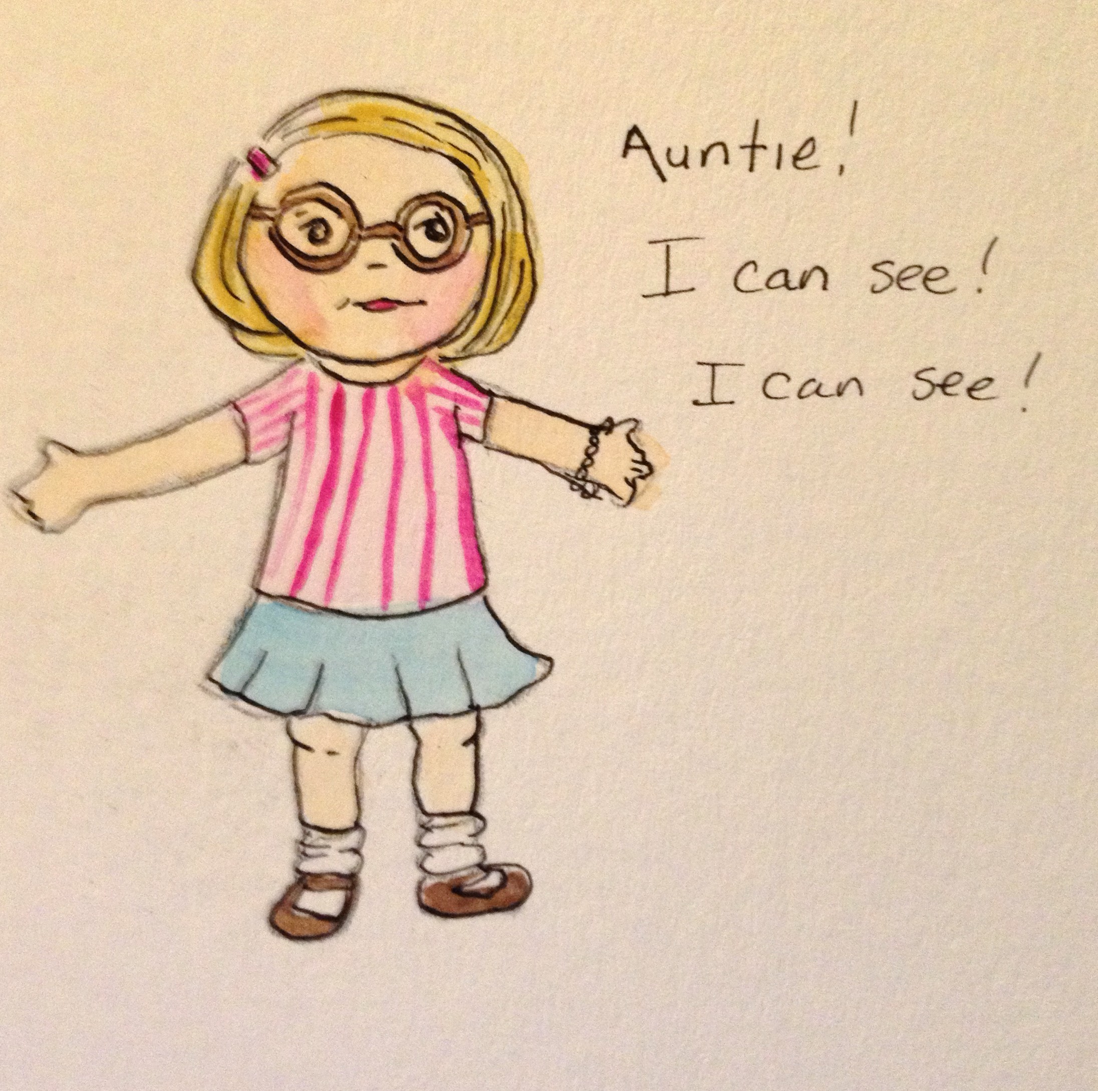 Tonight I have a few things to post. My friend Emily (the 4 year-old) found out today that she is getting glasses. I still remember when I got mine, I was thirteen. I needed glasses for at least a year and a half before I got them. My Mom was convinced that I wanted them only because my cousin had them. I couldn’t see a thing. She finally realized that I was telling the truth when I couldn’t find something for her in the pantry. When I got my first pair of glasses the thing I remember most is my Mother’s face. I had forgotten how many freckles she had. For Emily tonight two little gifts, a new “Emily” cartoon with glasses, and a bookmark for her bedtime stories.