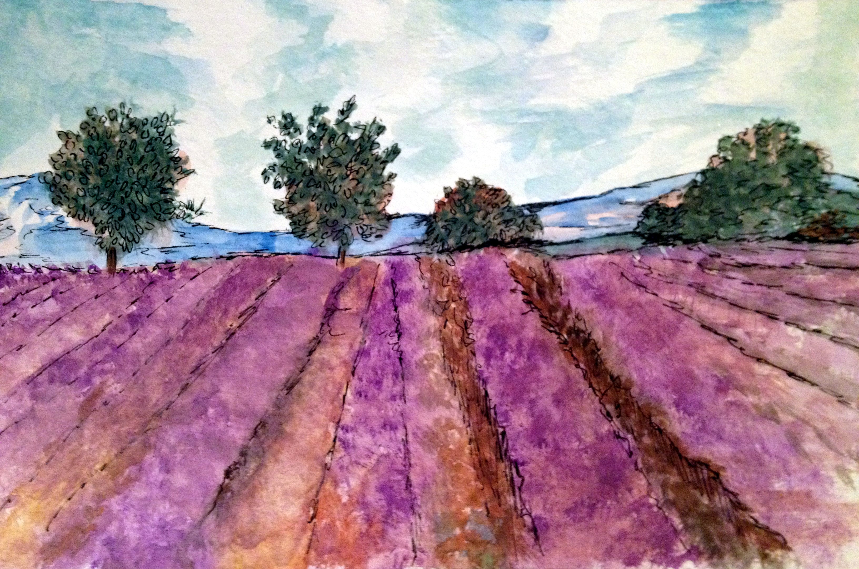 A field of Lavender in watercolor. Painted from a photo, let’s just dream that at some point I’ll paint one again plein air.