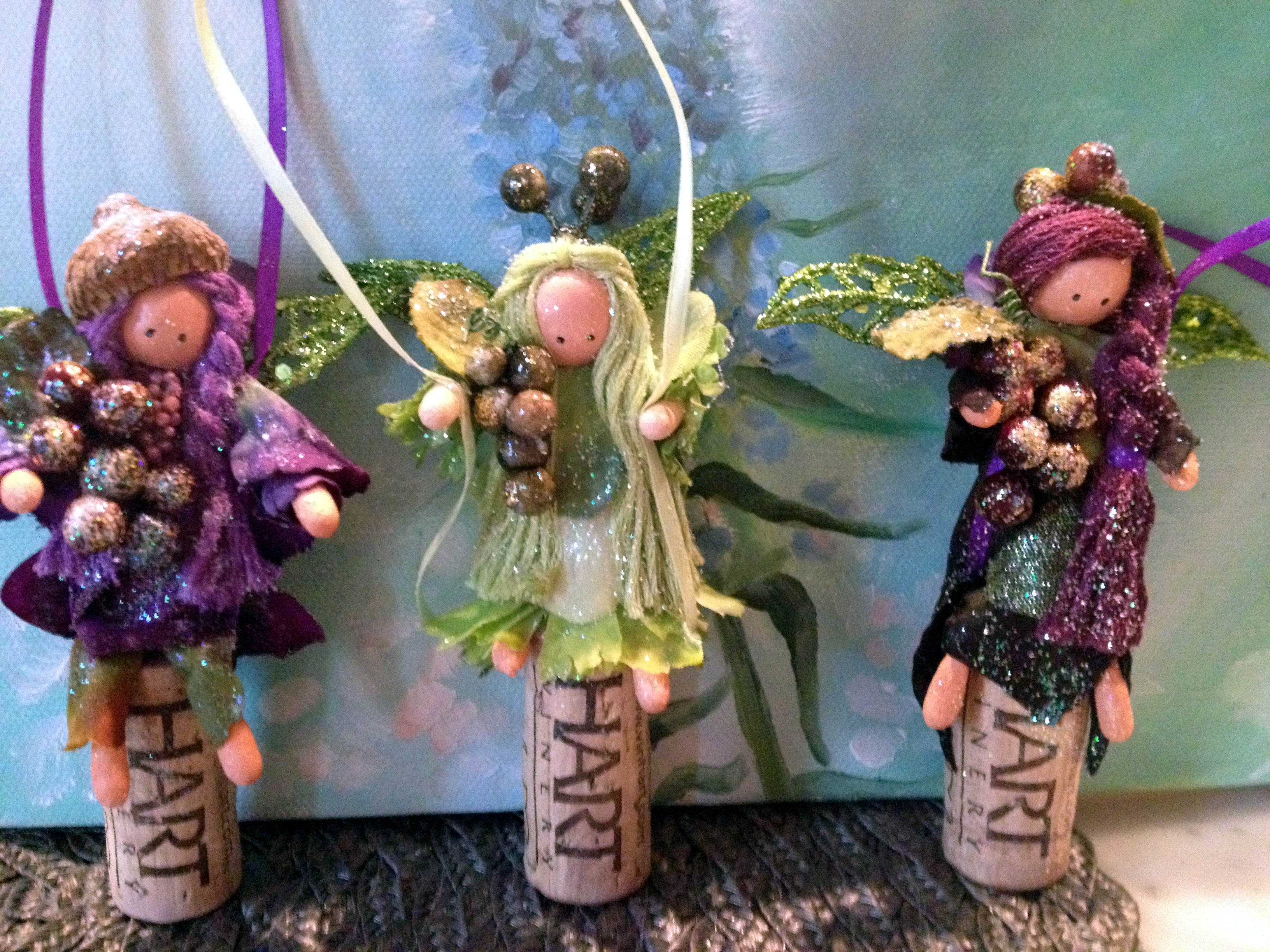It’s just after 8:30 Tuesday evening. I’m sure many people who read my regular ramblings think, “Oh, she is posting early tonight.” I guess in a way that’s true, but in reality it is the end of a fourteen plus hour day. It’s getting near crunch time for my upcoming shows, as well as trying to sell on etsy, and in our local wineries. I’m pushing myself as hard as I can to produce as much as I can, but I care so much about what I do, and the quality of what I produce, that I am not getting as much done as I’d like. That being said, with what I have already sold, and the two Dan left with winery gift shop managers, I have made 98 pieces. I didn’t want to fill my blog with photos of fairies every day, but I’m so tired that I am putting up some of what I did today. I just don’t have an ounce of creativity left in me right now, and my back is killing me from hunching over my work all day. The good news is that Dan brought my “wine fairies” to the wineries today and two of them are considering carrying my item. Dan has been saying for years that I should be supporting him because of how talented I am. I never had the confidence to really try. Now as we find ourselves in a not so great situation I am feeling like I need to push myself. I am finally at a point in my life when I feel like it’s OK to say that I’m good at something. Of course that doesn’t mean I had enough courage to bring my own stuff into the wineries, Dan as always stepped up to the plate. We will know next week if we are in. It could be a fantastic opportunity. I know I shamelessly promoted my esty site here a few days back, but I came up with what I think is a brilliant idea. You know all those wine corks you save from special occasions? I’m turning them into keepsake ornaments. I advertised on my etsy site for people to send me their wine corks with info about their special event and I will turn it into an ornament accompanied by a tag conveying the info. In the process I am recycling corks. Recycling is never a bad thing.