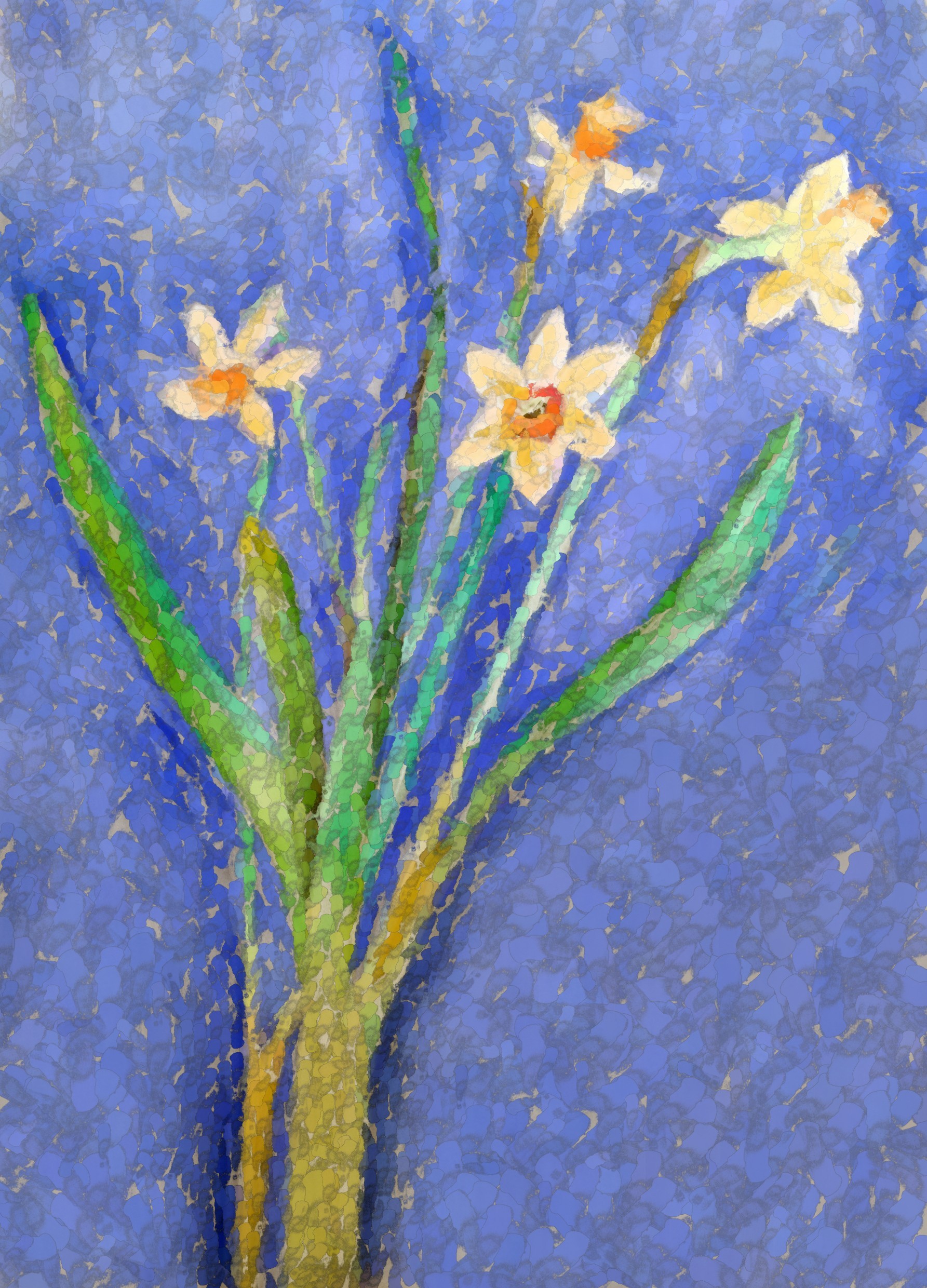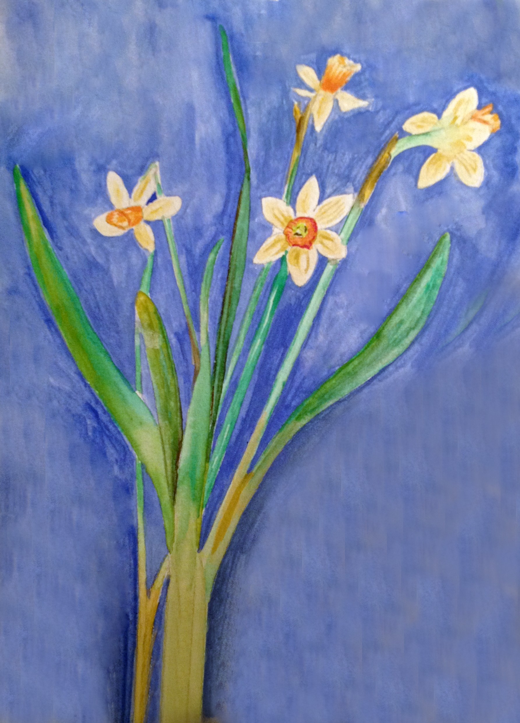 Oil. Painted on a day when I wasn’t feeling great and my wonderful husband painted a version of his own alongside me to help me get past my artistic block.